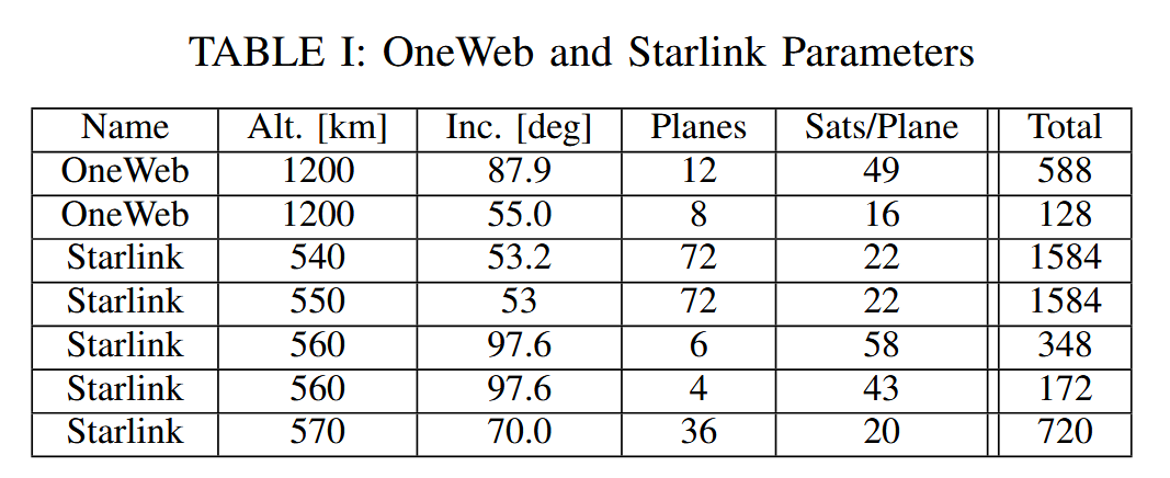 For most of the results they only use OneWeb, as it is the constellation with higher altitudes and is therefore maybe also more suited for the task. However it seems OneWeb is struggling in the real world so maybe we should do some analysis on only starlink?