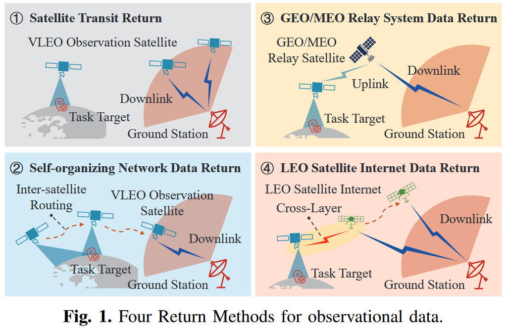 - “Assuming that both VLEO and LEO satellites are equipped with multiple types of communication antennas, wherein microwave antennas facilitate signaling interactions, while laser transceivers handle observational data transmission [19].” Page 6
