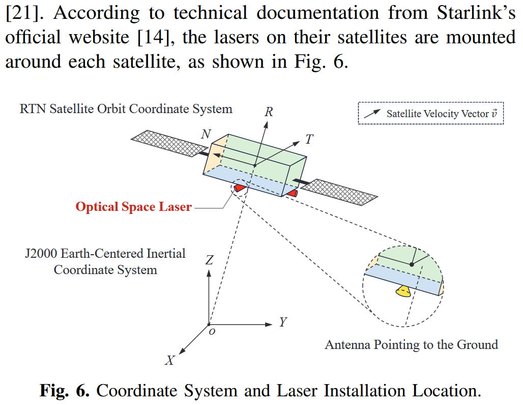 - “However, in the current scenarios modeled in the literature [31], [32], each satellite is equipped with only one ISL terminal, and the antenna is pointed toward the ground.” Page 7